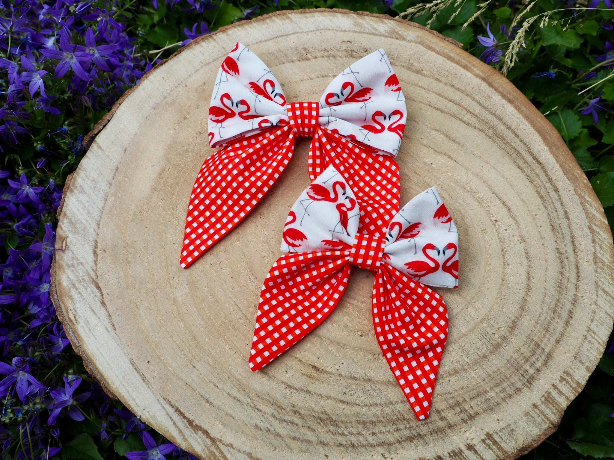 Flamazing - das beschreibt unsere sommerliche Hundeschleife und Katzenschleife in knalligem Rot mit Flamingo Druck und Karos wohl am besten! Perfekt für Spaziergänge im Park oder besondere Anlässe, ist dieses Accessoire definitiv ein Hingucker und sorgt garantiert für gute Laune :)