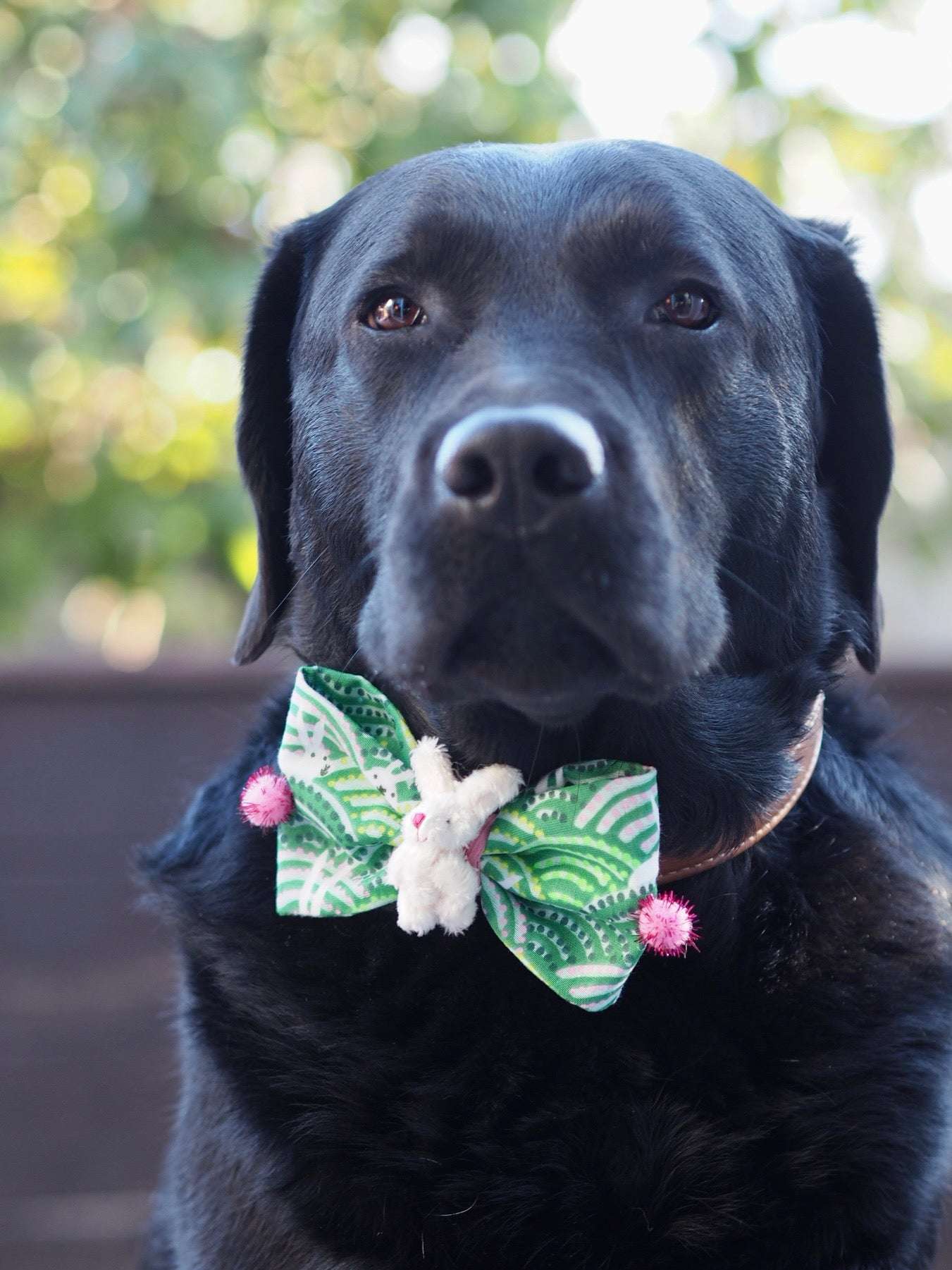 Labrador Ramses präsentiert euch unsere süße "Somebunny to love" Schleife in Größe L, Katze Leyla trägt Größe S :)