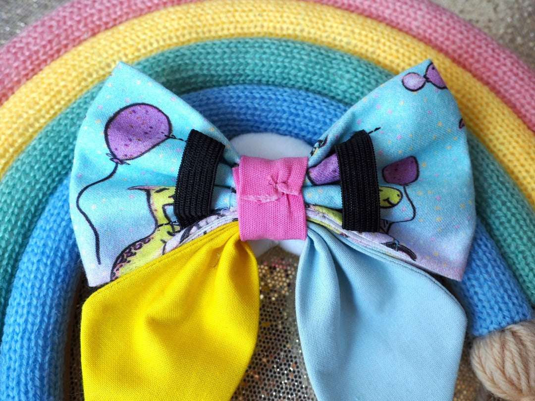 Unsere farbenfrohe Hundeschleife / Katzenschleife mit den süßen Dinos und dem fluffigen Regenbogen (bei Größe M und L) oder dem gelben Holzknopf in Herzform (bei Größe S) läd euch hoffentlich zum Träumen ein! Perfekt geeignet für Fotoshootings oder auch einfach für Spaziergänge mit euren Vierbeinern - so oder so ein Eyecatcher :)