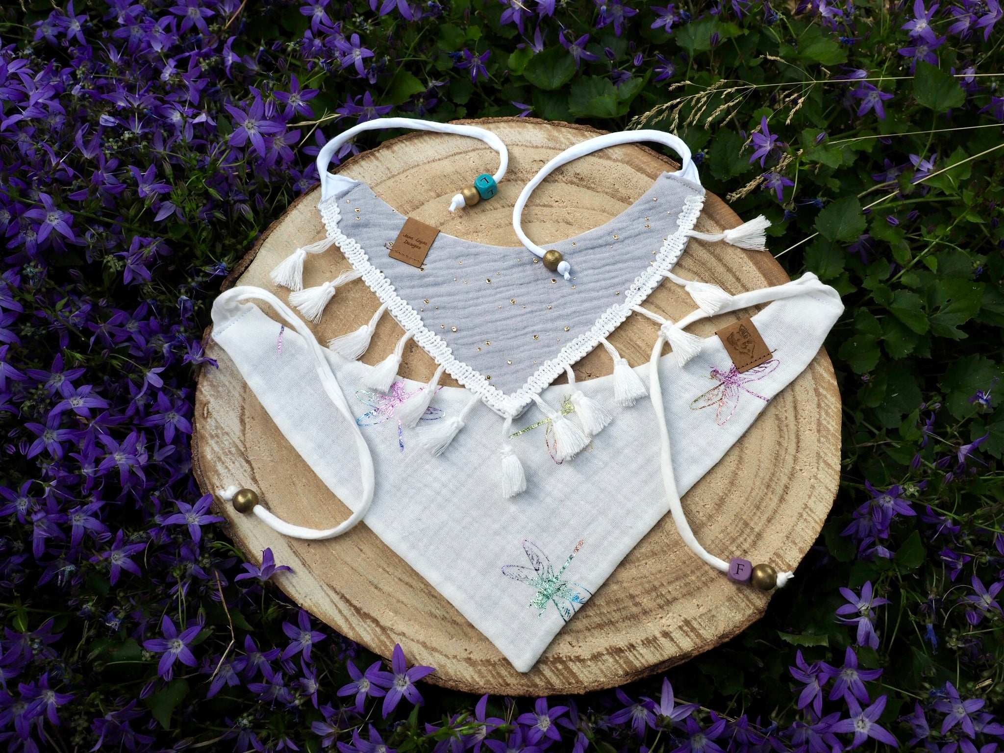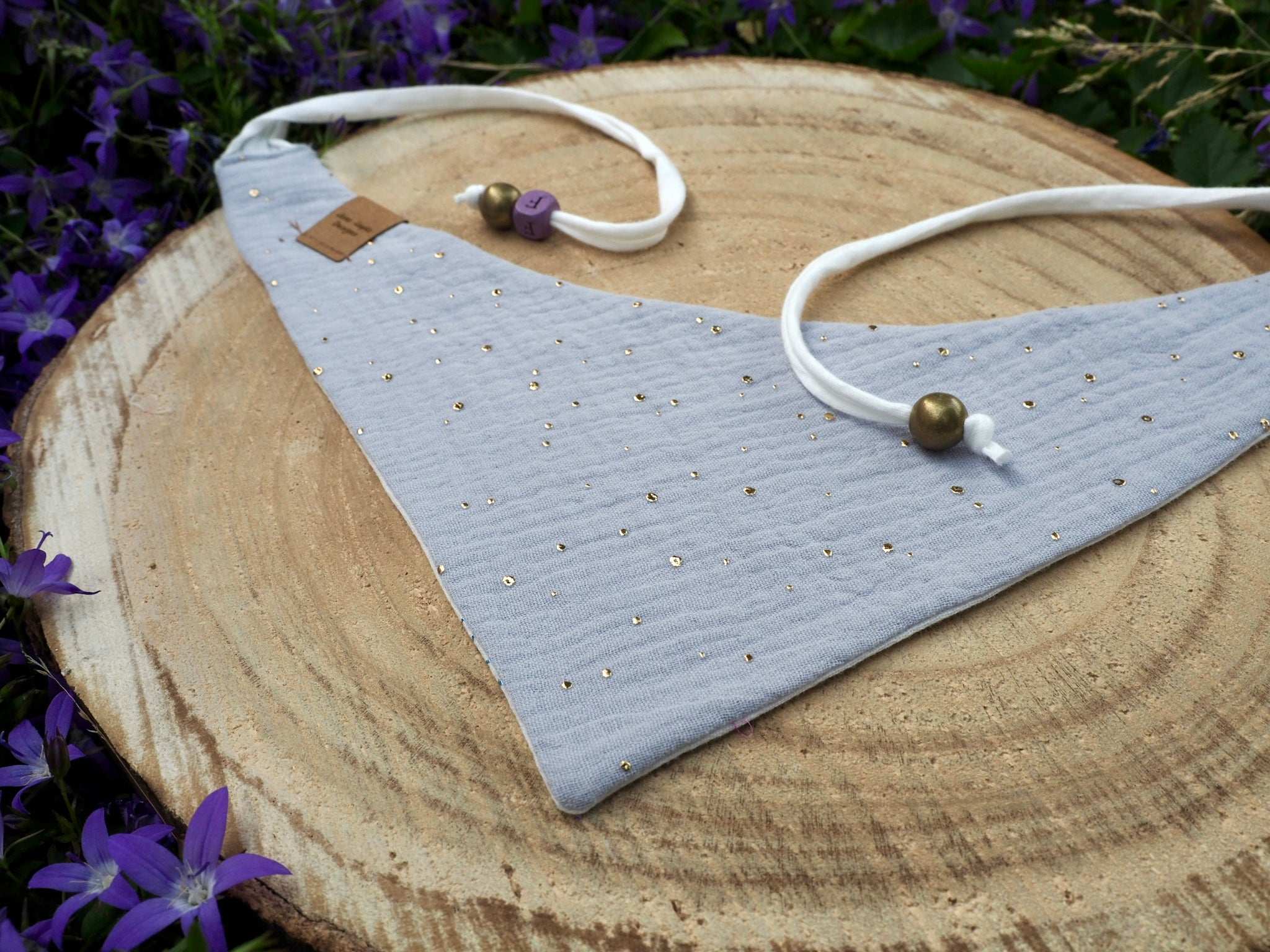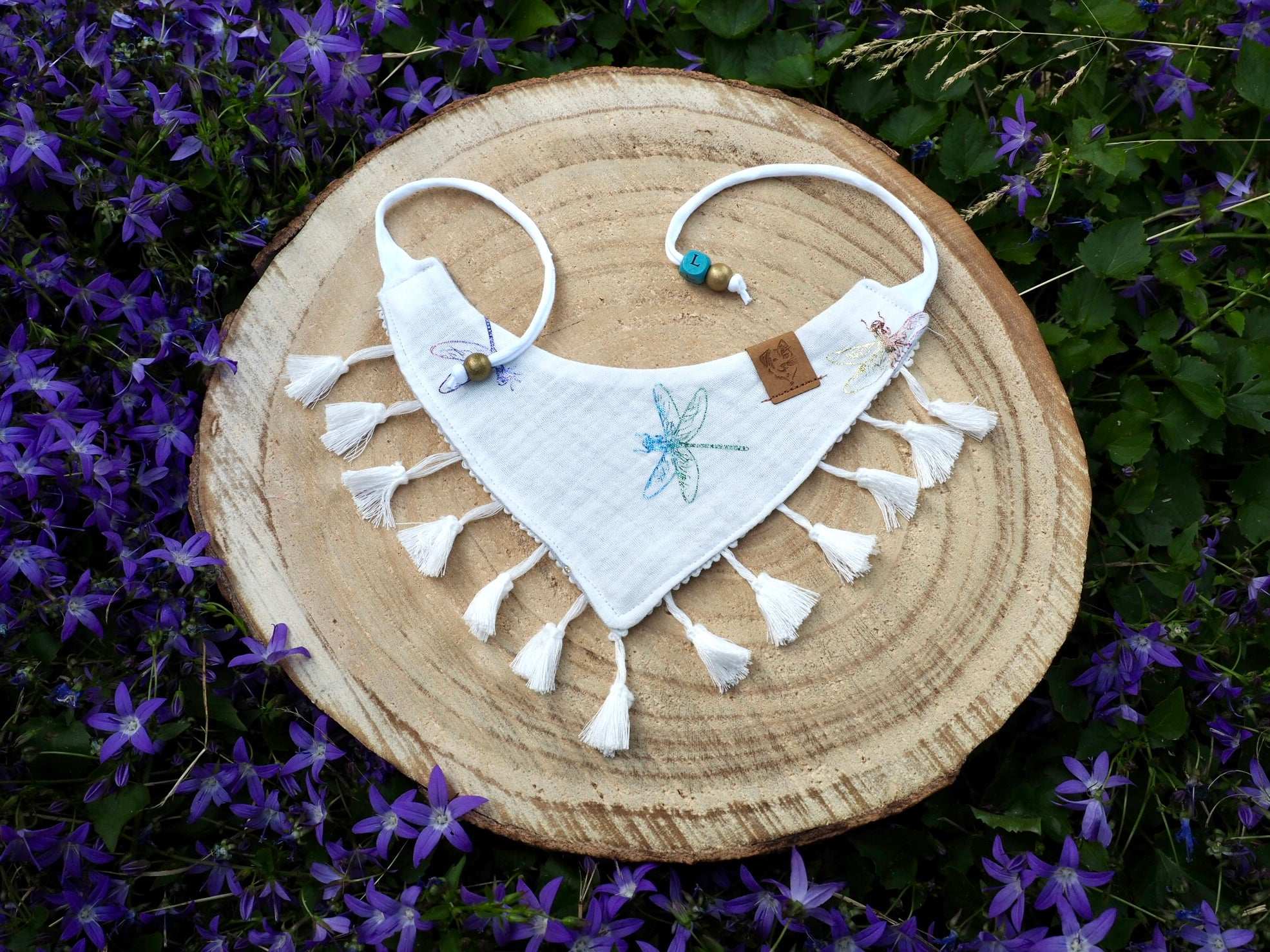 Mach deinen Vierbeiner zum süßen Eyecatcher mit unserem hochwertigen Hundehalstuch und Katzenhalstuch aus Musselin! Das edle Design mit glitzernden Libellen und goldenen Punkten sorgt mit Sicherheit überall für bewundernde Blicke - ob im Park, beim Stadtbummel oder beim Fotoshooting. Mit unserem schicken Halstuch sind eure Fellnasen bestens für den Sommer gerüstet :)