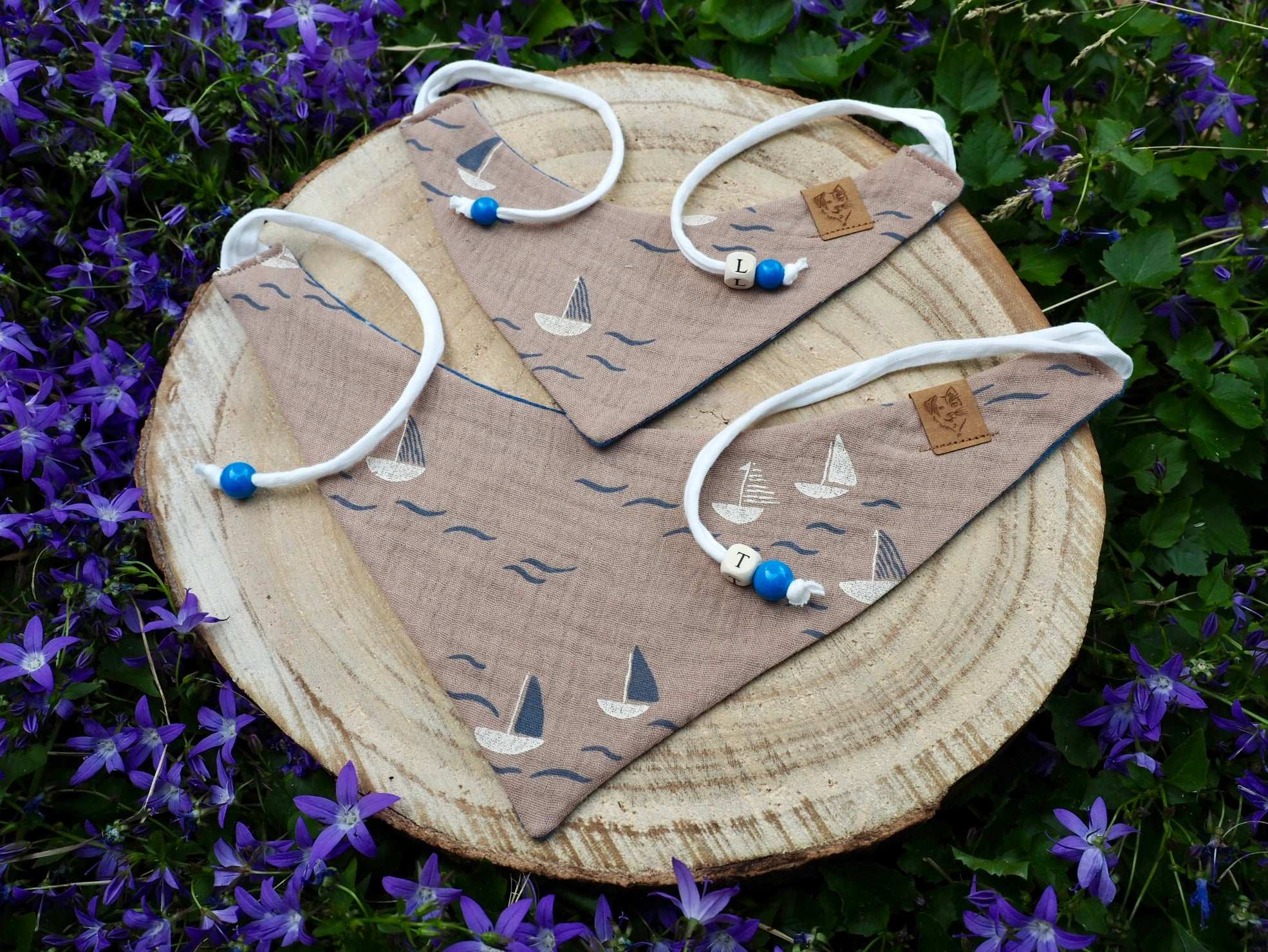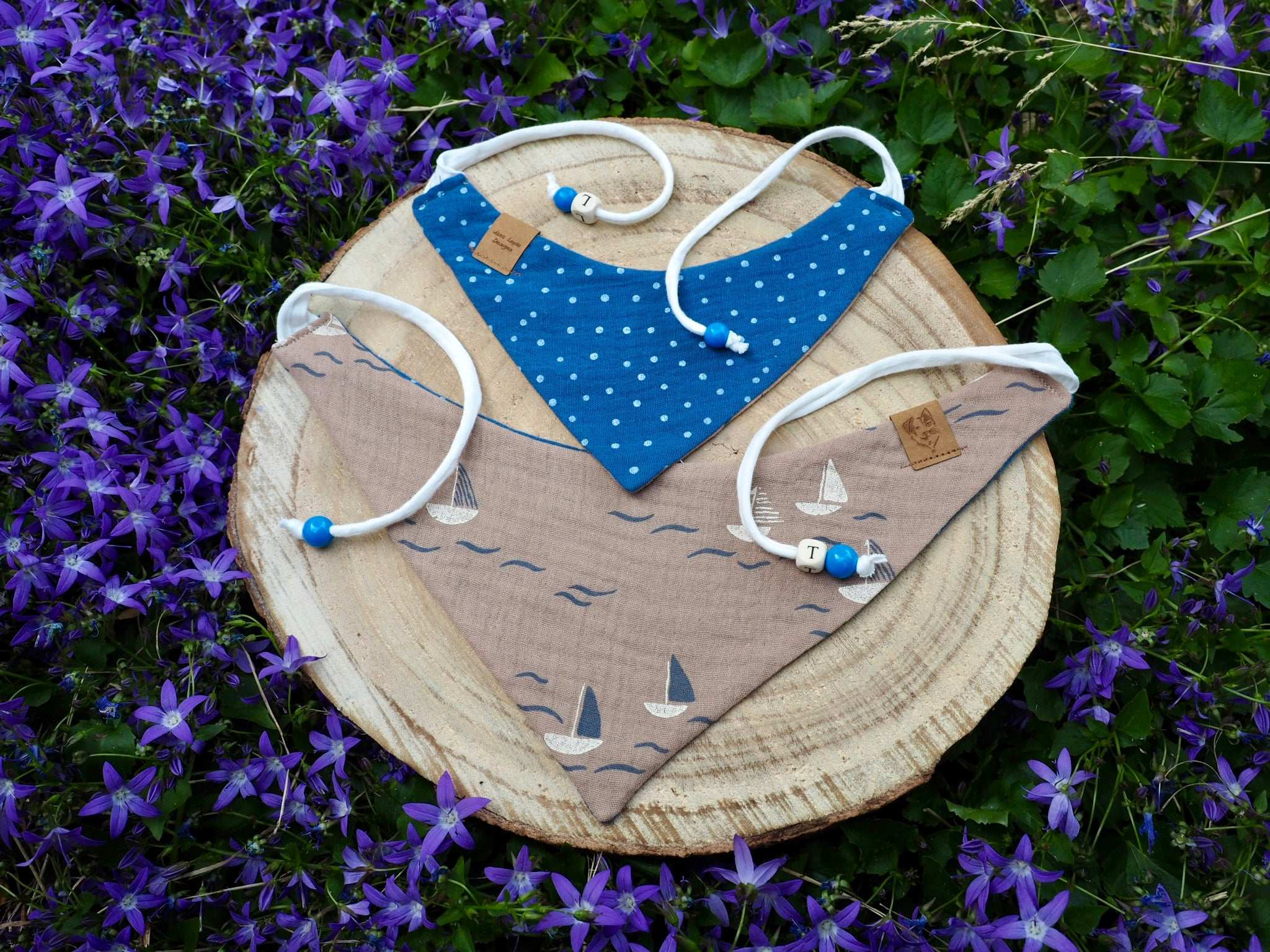 Unsere Hundehalstücher und Katzenhalstücher sind fast alle beidseitig tragbar, so dass ihr zwischen zwei tollen Designs wechseln könnt - ob Segelboote oder Punkte bleibt also ganz euch überlassen.