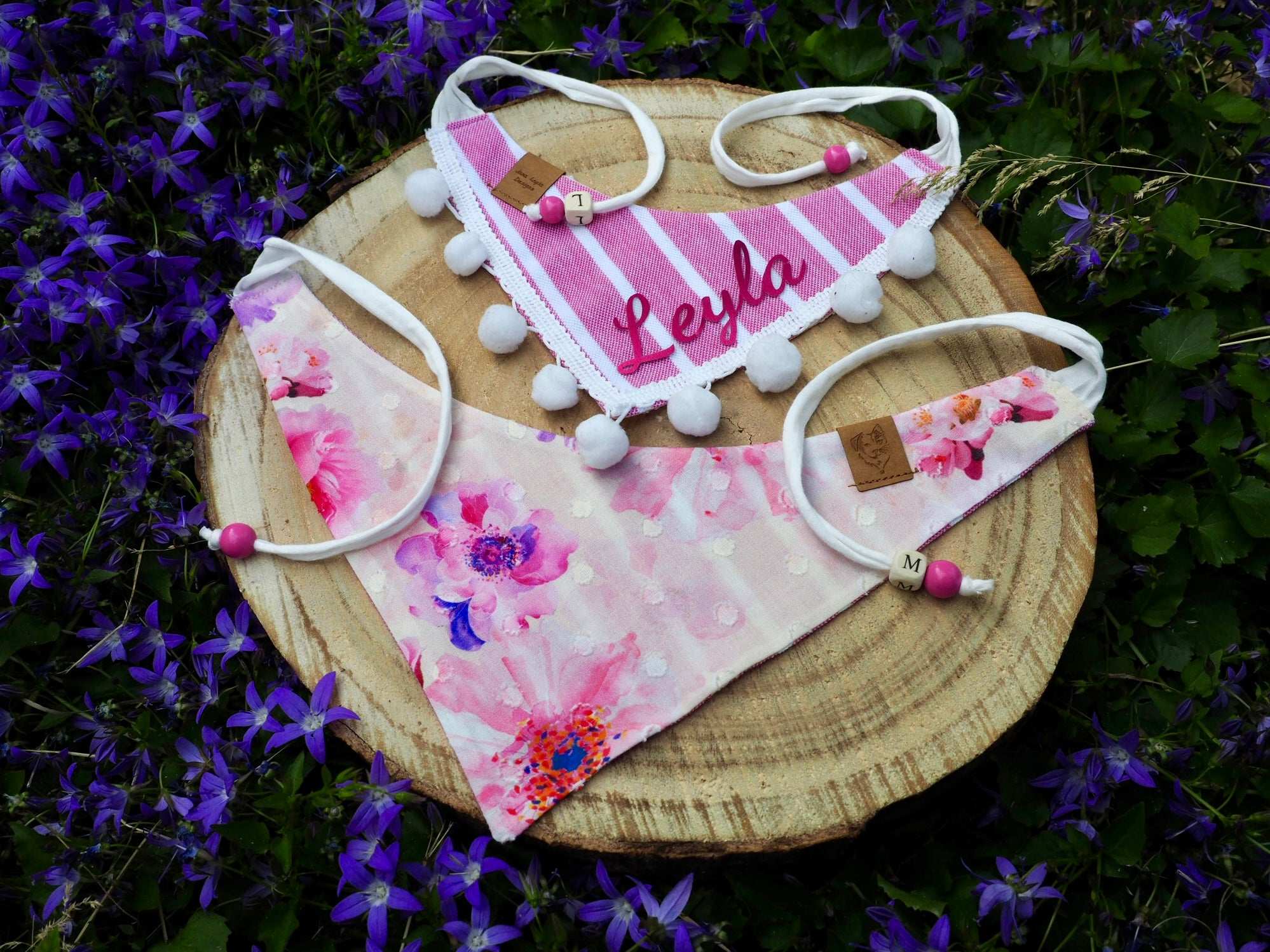 Fast all unsere Hundehalstücher und Katzenhalstücher lassen sich wenden und sind somit beidseitig tragbar. Florales Muster oder Streifen - Ihr könnt das Design also einfach nach Lust und Laune wechseln.