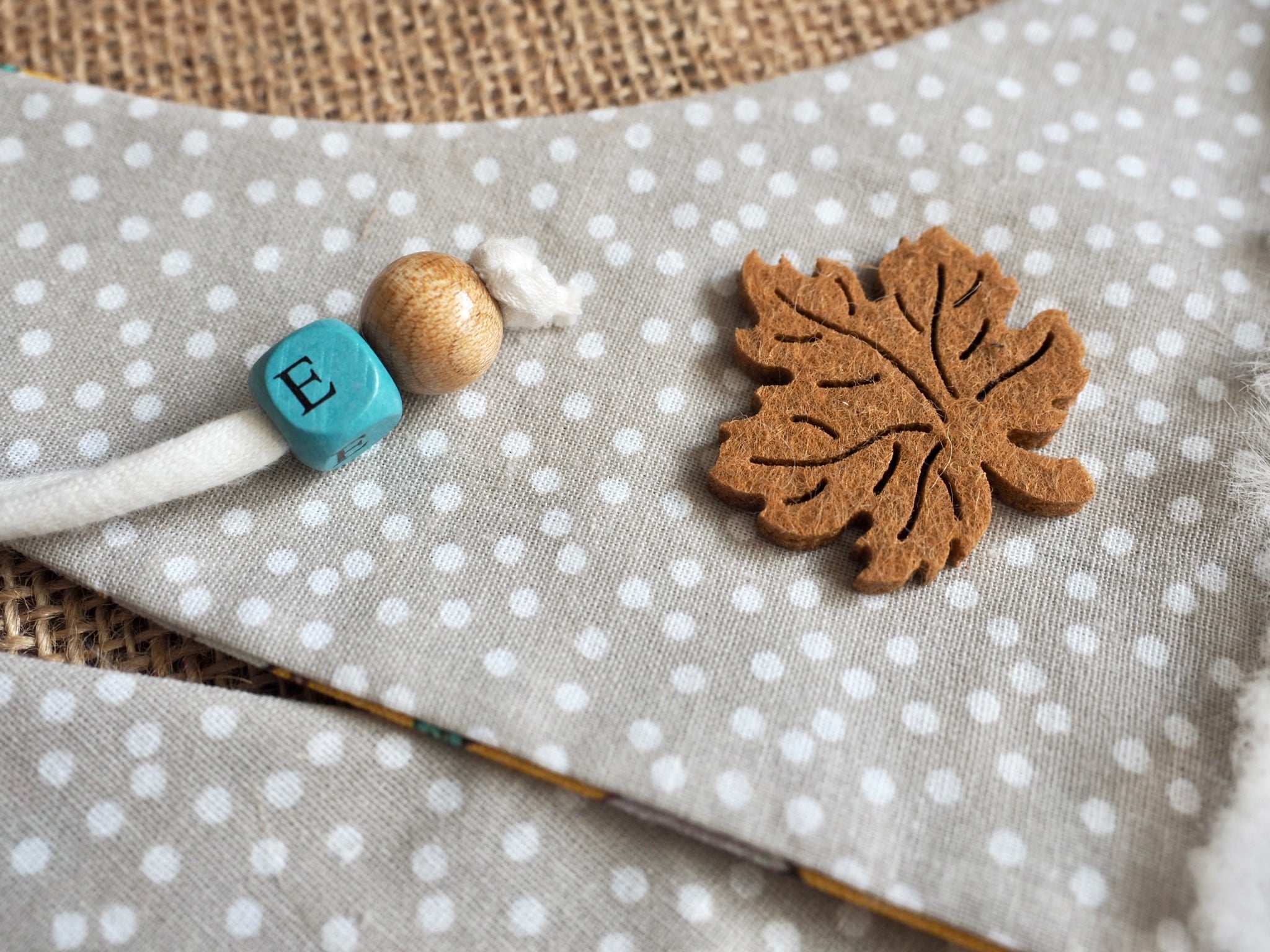 Materialzusammensetzung: 100% Baumwolle; Bänder: 100% recyceltes Textilgarn plus Holzperlen, Label: 100% veganer Lederersatz aus recyceltem Papier und Latex.